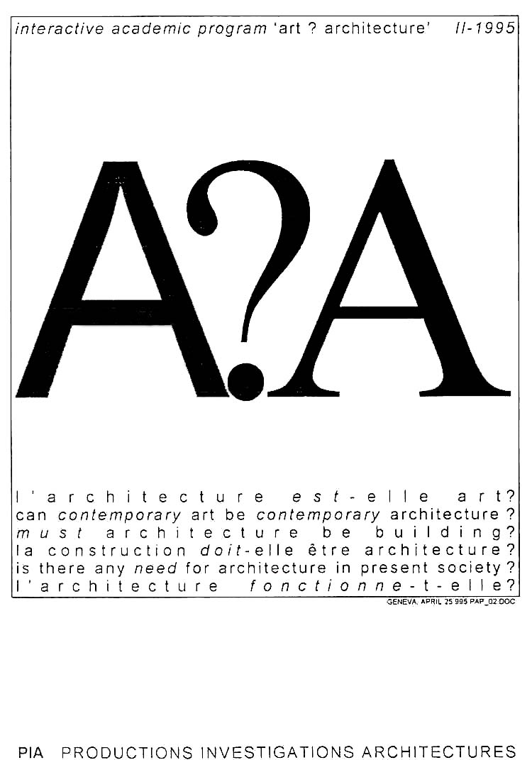 Question of Pedagogy, Part 4. These provocative questions defined the 1995 summer semester’s work for a group of master students from the architectural programs at the ETH Zürich, Switzerland, and the Fachhochschule in Köln, Germany. The educational endeavor had been in the works for some time, and with friends with whom I had studied at the EPFL, Switzerland, we launched this program to test and expand on traditional approaches to the production of architecture. This was done through a pedagogical stand investigating questions about the role of art and architecture within the context of urban interstitial spaces.