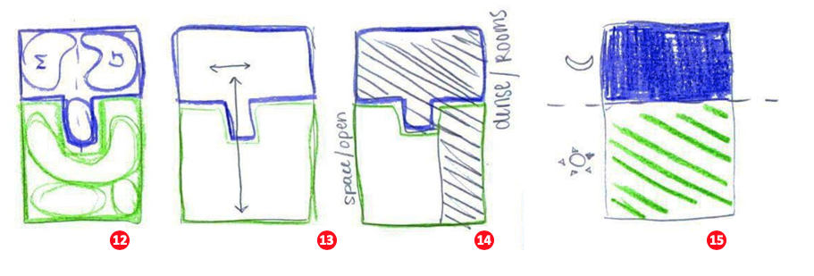 With time, the conceptual diagrams become the embodiment of the student’s understanding of their project. Typically considered as a milestone in the development of their design, it is important to state that conceptual drawings may be done at any time during the elaboration of the project. In fact, with good work habits, I encourage that they be done as often as possible for the simple purpose that creativity need not to be solely a matter of intuition, but demands constant cross-verification to move the project forward with confidence.