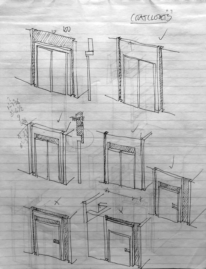 Image 4: Iterative sketches for a piece of built-in cabinetwork for private client (author’s drawings). Added 01.25.2021