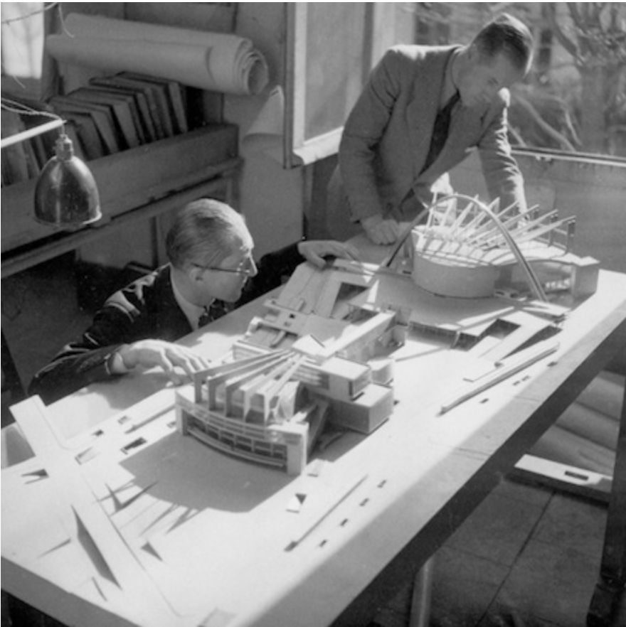 Image 1: Google images -Sketches by Le Corbusier for the Palace of the Soviets, Moscow, Russia, 1928-1931Image 2: Google Images -Photograph of Le Corbusier and Pierre Jeanneret studying the model for their competition entry of the Palace of the Soviets