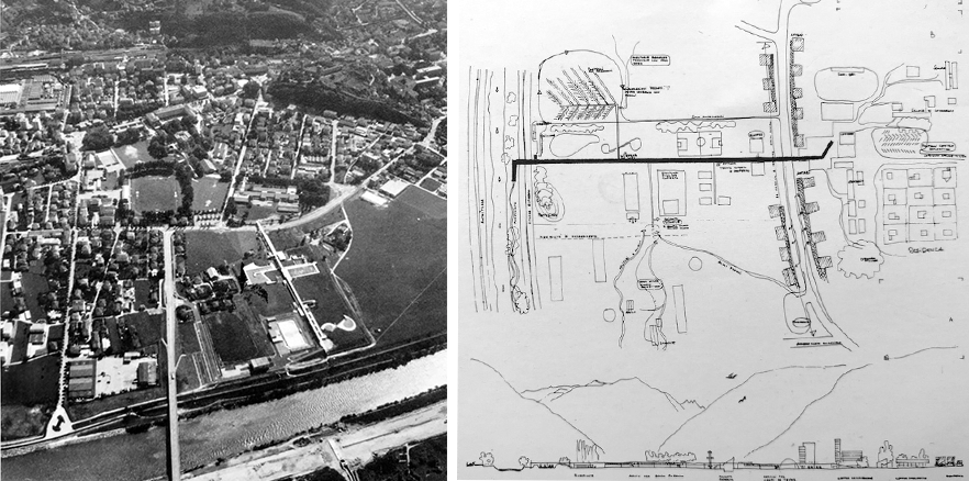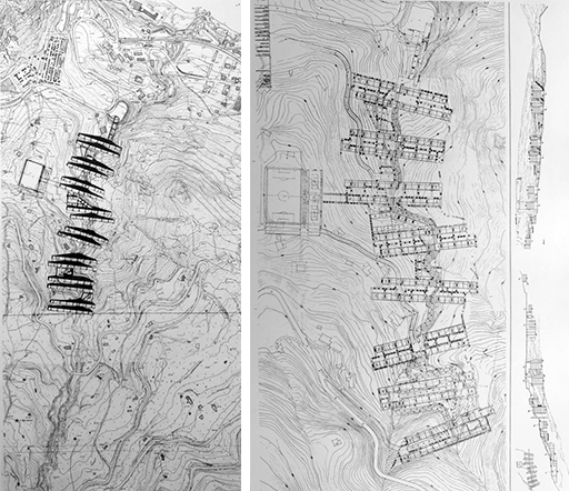 Image 7: Lotus International No. 15, 1977 -Site strategy for a Sports Centre in Bellinzona, Ticino, Switzerland by Ticinese architect Aurelio Galfetti