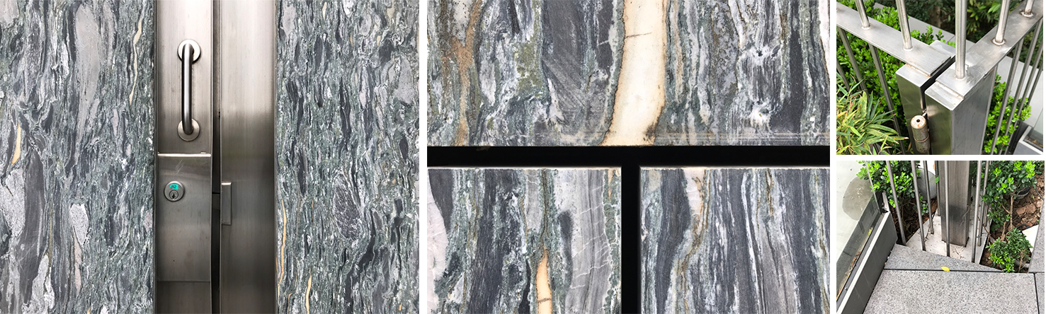Another quality of TWBT’s spatial treatment is the attention and careful choice of materials and textures, juxtaposing existing and new, and their expression of how those materials come together through beautifully crafted details. Many of the walls throughout the Center feature a dark striated greenish gray palette—marble sourced from southern China—which give a uniformity, yet the subtle changes in color, pattern, shape and size help define various spaces with incredible depth.