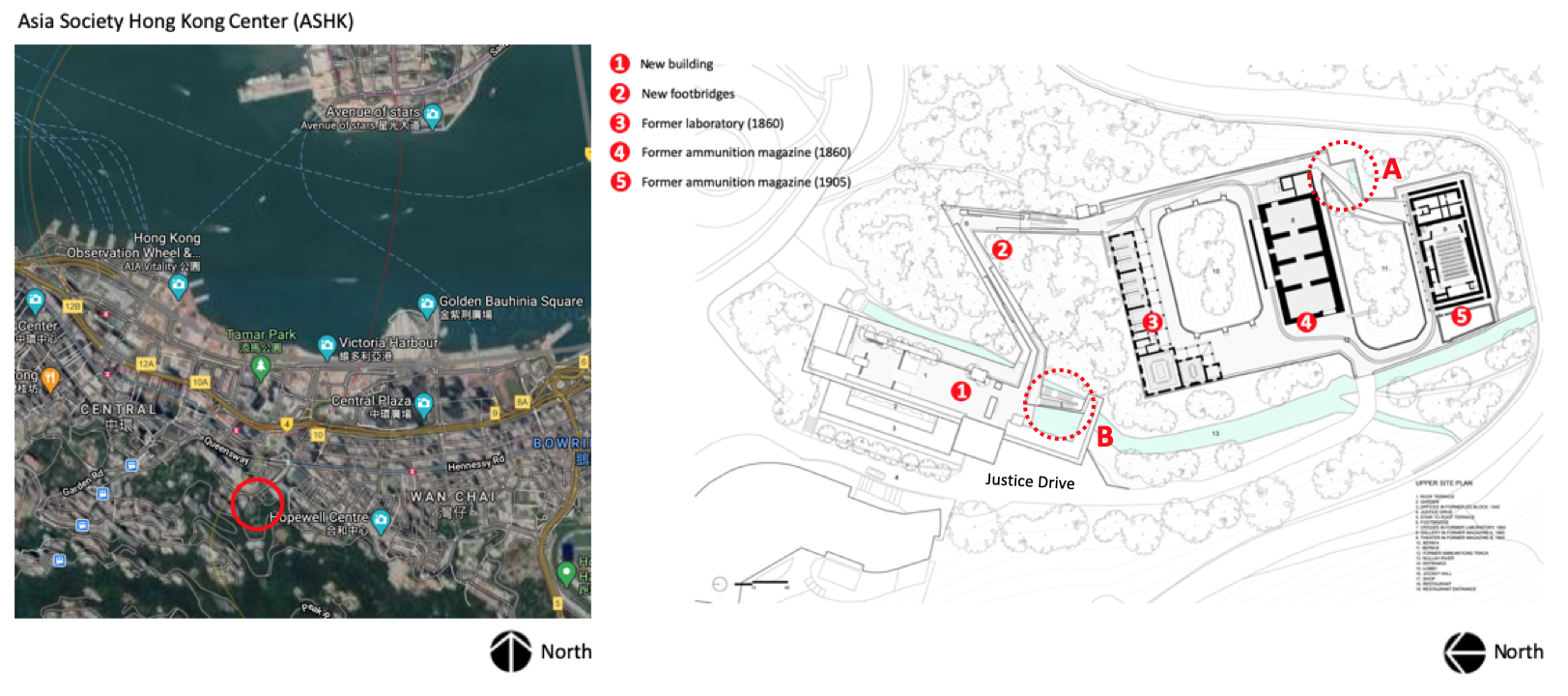 The site, high above Hong Kong’s harbor—a precautionary strategy when the site housed the British Military Explosives Magazine Compound called Victoria Barracks—was slated for a new entry pavilion added to house the main public amenities of ASHK that feature “a store, café, rooftop garden, and permanent exhibition illustrating the facility’s transformation.” (image 4, number 1 above). The success of the overall project showcases contemporary ideas of preservation (the site has the status of Heritage buildings) and Hong Kong’s need to maintain its economic world stature, while securing its position as a cultural, artistic, and intellectual hub in the Pacific Rim.