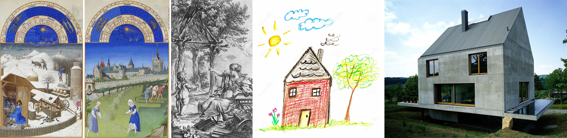 As they relate to specific regions and climates, the primary function of roofs is to protect a building from snow, rain, sunlight, temperature, and wind. These coverings have taken many forms and shapes over millennia, ranging from traditional pitched roofs to modern flat open-air roof gardens, all permutations contributing to the meaning of private and public buildings within an urban, rural, or suburban environment. However, universally, the pitched roof with its triangular form remains an icon as an abstract form both in the depiction of the primitive hut by the Abbé Laugier, or closer to our daily lives, a child’s depiction of “their” house, or if referencing built architecture, the superb interpretation of the idea of house by Swiss architects Herzog et de Meuron.