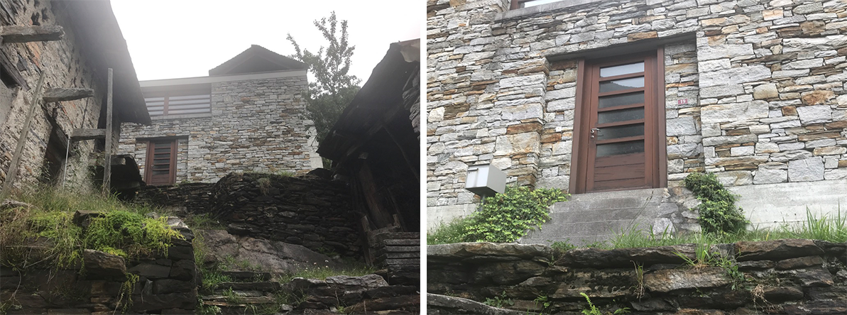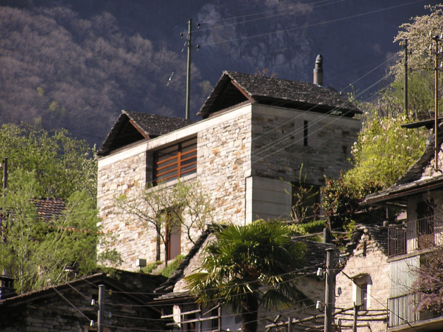 Mid way up the winding two-lane road, the hamlet of Vogorno faces south, extending its arms along the steep and dramatic landscape where the river widens and becomes Lago di Vogorno. The community is strung out into several small settlements and at the farthest northern neighborhood I discovered—to my great surprise—a house that I remembered from my studies.