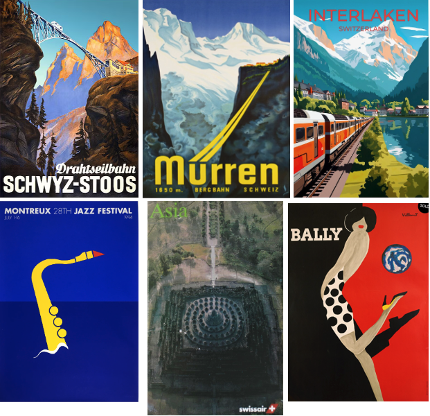 Avec Teddy Aeby, autre artiste fribourgeois qui me rappelle Breughel l’Ancien, le style de Bosson se démarque de ce que l’on considère comme une filiation directe avec les célèbres affiches suisses. Mêlant modernisme et style du milieu du XXe siècle, les affiches suisses promouvaient traditionnellement une image de marque nationale pour les sites touristiques, les expositions internationales et les thèmes politiques. À tout amateur d’affiches suisses de qualité, je recommande le Museum für Gestaltung de Zurich, dont la vaste collection est stupéfiante. Aujourd’hui, je suis ravi de voir cette tradition d’excellence se perpétuer avec la nouvelle génération de graphistes.