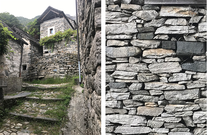 Door Locks in Corripo, Switzerland. North of the Ticinese city of Locarno, Switzerland, high up in the Verzasca valley, is a picturesque 13thcentury vernacular village called Corippo. It seems to be built at the end of the world (the first official access road was only constructed in 1883), and, while not much has changed over the past centuries, it is a must to visit. With only 12 inhabitants in 2018, it is the smallest municipality in Switzerland, however, it is better known for its use of stone. Throughout the village, paved granite paths, granite walls, granite stairs, and steep slate roofs create a visual harmony that is both striking and overwhelming.